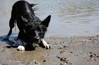 Jenn, on the other hand, is somewhat more energetic (have I mentioned that?) than Lu’, and can run like a maniac for hours on end, stopping only to lap up water, dig holes, or bring a stick/tennis ball/piece of garbage to drop at my feet.