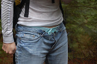 Now, some of you may have noticed my fabulous hiking wear – jeans. This is because I have no “hiking pants” per se. I have had to make do with wearing my corduroy pants up until now, but I kind of forgot to put them in the dryer last night. Ooops. So, jeans it was. Not the greatest thing to wear when one is hiking through a rain forest. Especially if said jeans are a touch too big (thanks Cara!), and keep slipping down as one walks. Hmmm, what to do, what to do… I KNOW!